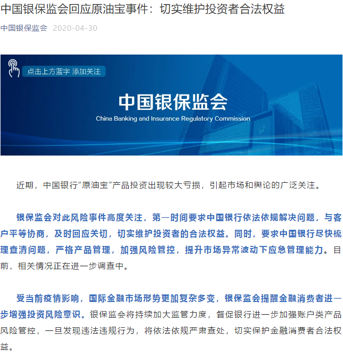 中行“原油宝”事件迎来最新进展,监管部门首次公开发声。