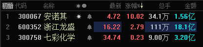 今日早盘,两市低开低走,染料板块逆势走强,安诺其封死涨停,浙江龙盛、七彩化学分别上涨2.79%、0.23%。