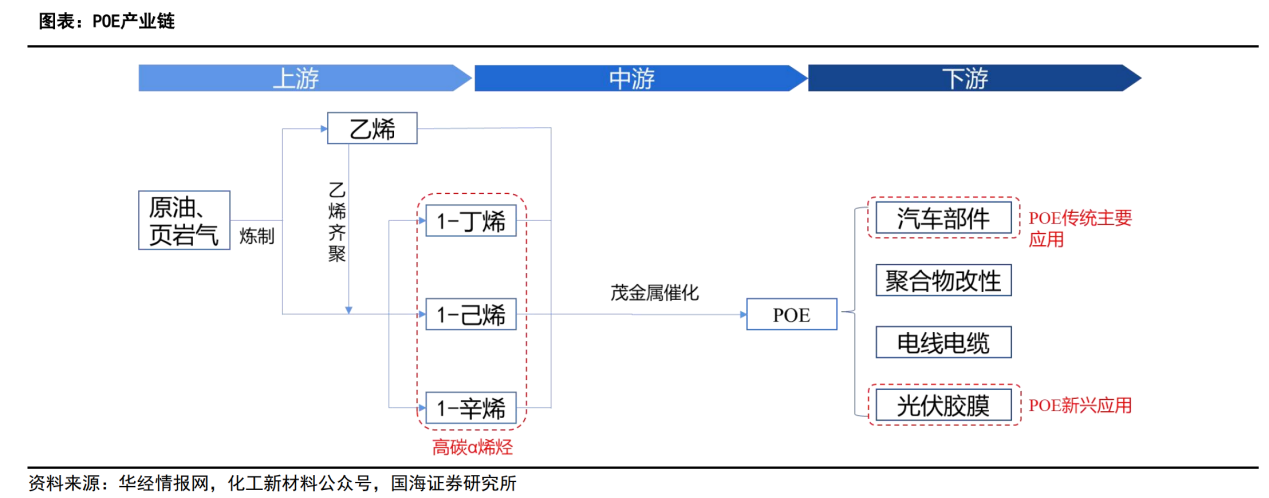 2021年12月,卫星化学发布公告拟建绿色化学新材料产业园,该项目二期计划建设年产10万吨α-烯烃及POE装置。