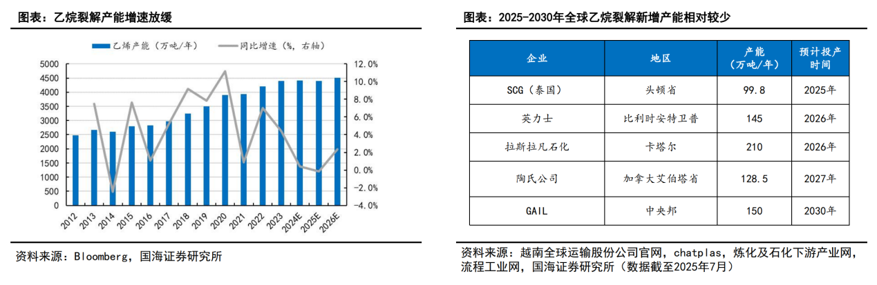业绩修复与景气回暖预期:公司2025年第三季度业绩受到连云港基地部分装置例行检修的短期影响,导致归母净利润环比下滑13.95%。随着检修结束和装置恢复正常运行,叠加主要原材料乙烷、丙烷价格自高位回落,公司2025年第四季度及2026年的盈利能力有望迎来环比修复。