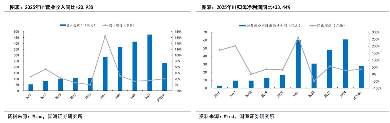2025年上半年,公司实现营业收入234.6亿元,同比增长20.93%;实现归属于上市公司股东的净利润27.44亿元,同比增长33.44%。