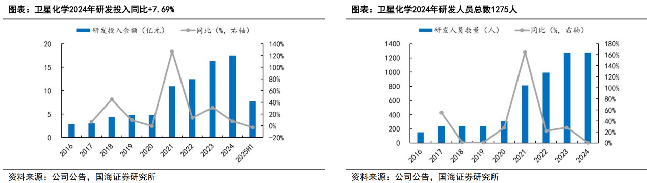 2024年,公司研发投入17.51亿元,同比增长7.69%。截至2024年12月31日,公司研发人员总数1275人,同比增长0.31%。