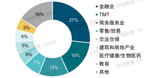 图:2025年前三季度代表城市写字楼租赁成交案例租户行业占比