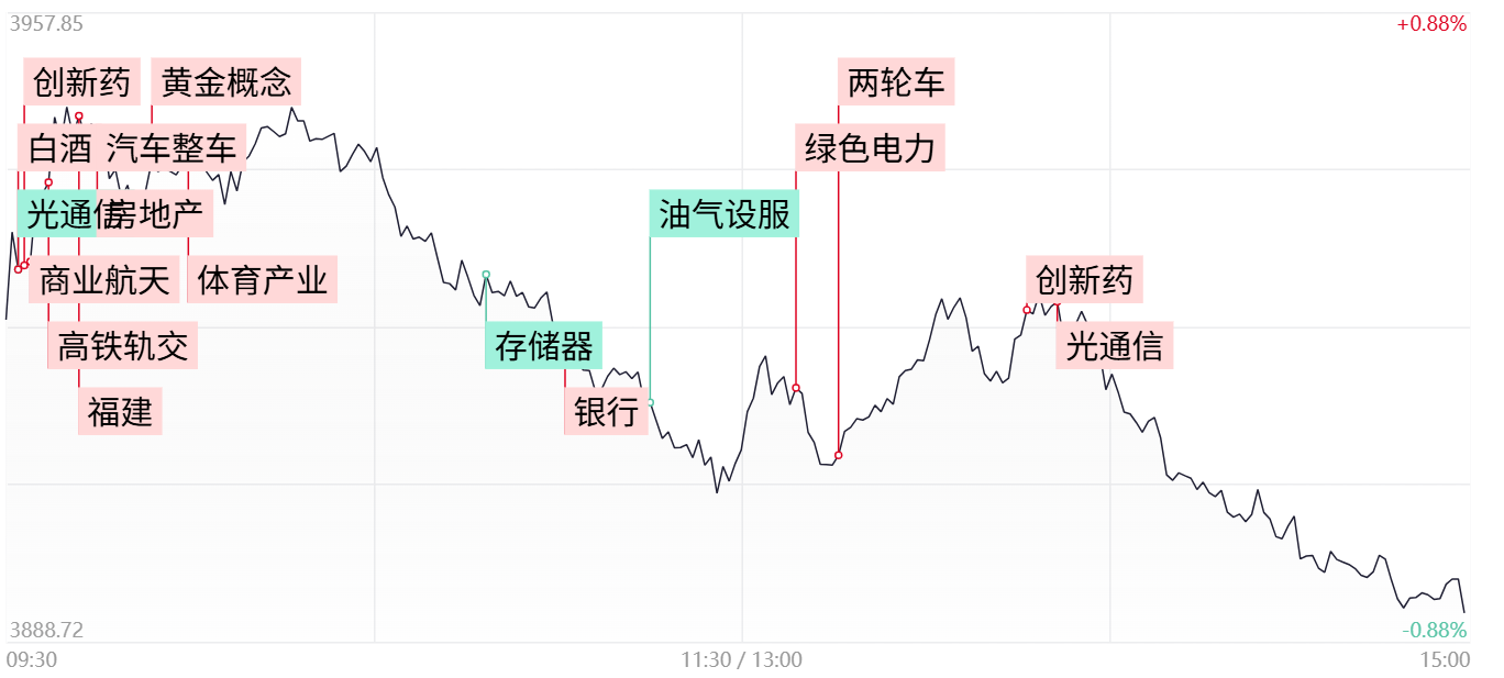 今日市场再陷调整,三大指数全线收跌。其中沪指冲高回落,3900点再度失守,整体仍先以震荡筑底的结构看待为宜。而创业板指相对较弱,以一根带量中阴线跌破3200点的同时,已回踩至布林线下轨,后市面临着重要关口。短线若想企稳,守稳布林下轨的同时,仍需尽快重新站回5日线之上。相反若延续调整,届时中期趋势或将逐步转入空头。从盘面来看,前期热门赛道如锂电、光伏、半导体、算力硬件等悉数陷入调整,并且部分高位人气股也出现抱团松动疑虑,因此上述热点方向的亏钱效应何时修复,同样也是后市止跌的关键。
