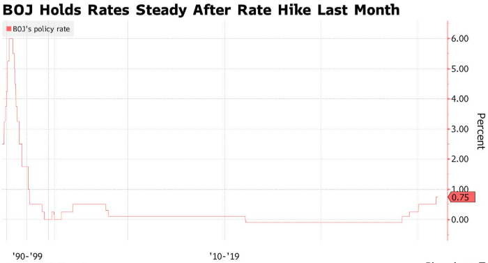日本央行如期维持利率不变 上调2026财年通胀预测
