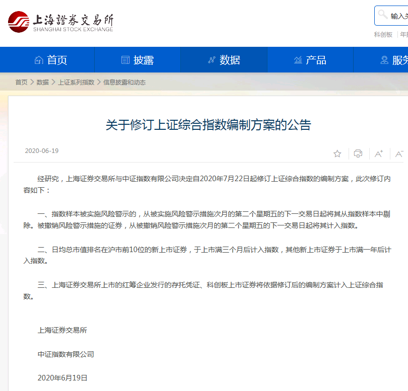 刚刚,上交所公布了上证指数的修订方法。以下是时报君整理的修改要点。