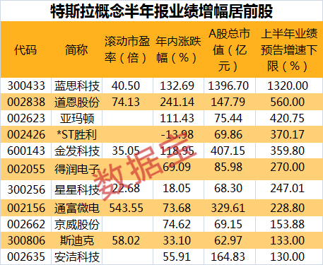 从业绩角度看,数据宝统计显示,蓝思科技、道恩股份、亚玛顿、*ST胜利、金发科技、得润电子、星星科技、通富微电、京威股份、斯迪克和安洁科技11股半年报业绩预告均实现翻倍式增长。