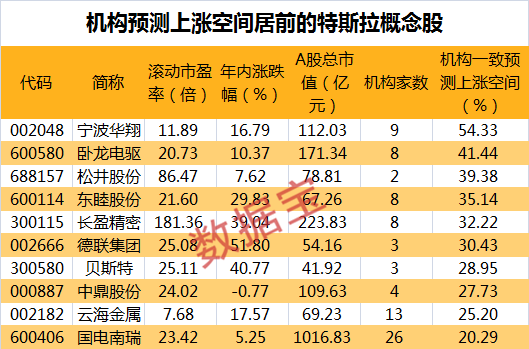 证券时报·数据宝不完全统计显示,目前A股市场共有150多家特斯拉概念股,除了部分企业在特斯拉供应商名单中外,还有一些公司间接为特斯拉提供服务。股价表现上,蓝英装备、奥特佳、道恩股份、蓝思科技、秀强股份、金发科技、模塑科技、亚玛顿和拓普集团9股的年内累计涨幅均已翻倍。
