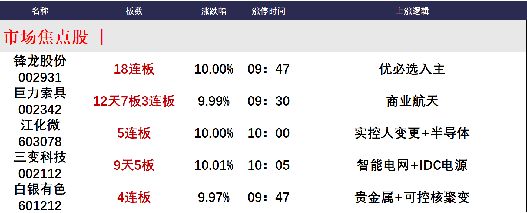 个股方面,全市场超3900只个股上涨,逾百股涨停,短线情绪持续升温,共20只20CM个股涨停,此外北交所还有2只个股30CM涨停。涨停个股集中在相对低位的光伏板块和经历了深度回调的商业航天板块,资金对追涨连板股兴趣平平,锋龙股份、江化微双双晋级但盘中都开板放量。