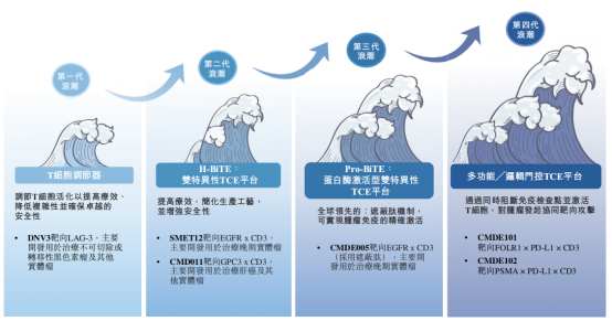 以时迈药业为例,其四款临床阶段药物中,除DNV3为T细胞调节器外,SMET12、CMD011及CMDE005三款均为针对实体瘤的TCE药物,展现出明确的差异化定位。