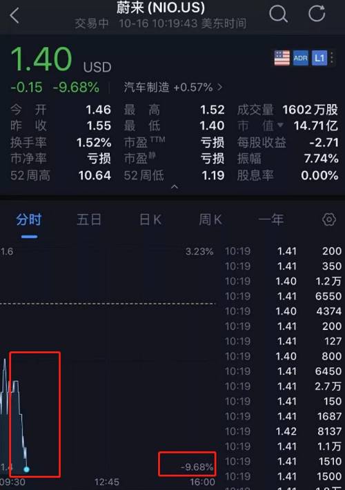 10月16日晚间,美股开盘,蔚来股价突然遭遇暴击,一度闪崩暴跌近10%,股价一度触及1.40美元。