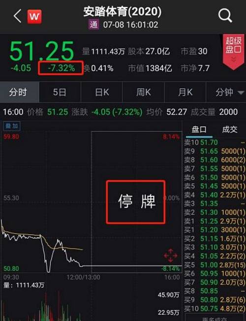 7月7日,知名做空机构浑水发布报告称,安踏通过控制大多数一级分销商来给利润注水,建议做空安踏体育。7月8日早盘,港股安踏体育出现大跌,盘中股价一度跳水超过8%。截至中午收盘,安踏体育报价51.25港元,较上一交易日跌7.32%,市值蒸发110亿港元。随后公司紧急停牌。