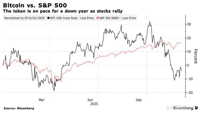 比特币今年的表现也因此落后于标普500指数,这是十多年来首次出现这样的情况。加密货币与其他风险资产的走势出现明显背离,即便与过去的“加密寒冬”时期相比也十分罕见。这一走势也令市场此前对特朗普重返白宫后有利监管环境带来机构资金加速流入的预期落空。