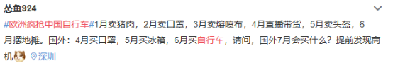 有网友调侃,从口罩到冰箱到自行车,国外7月会买什么?
