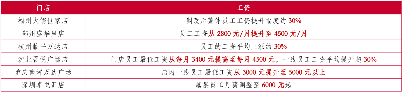 图:永辉超市调改门店的员工薪资变化 |