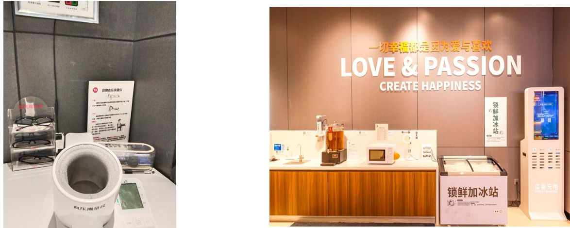 服务硬实力:门店服务硬件完备,提升消费者购物体验。调改后的门店,为消费者提供宠物寄存、微波炉、自助茶水、身高体重测量仪、血压计、视力检查表、洗手池等多样化的便民设备设施,提升消费者购物体验及购物便捷度。