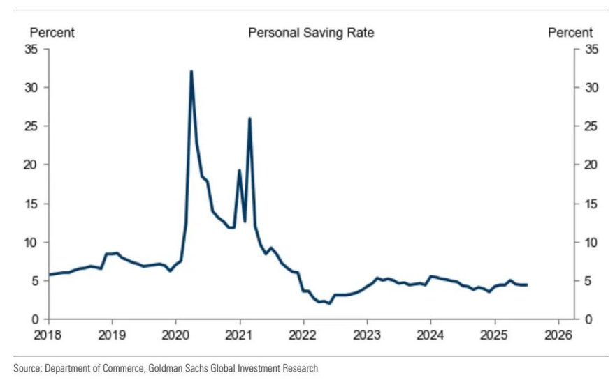 居民收支方面,7月美国个人收入环比增长0.4%,符合高盛与市场预期,主要驱动因素包括就业补偿环比增长0.6%、业主收入环比增长0.7%、租金收入环比增长0.5%以及资产收入环比增长0.1%,转移支付则保持平稳。个人支出表现同样亮眼,7月环比增长0.5%,略高于高盛0.4%的预期,与市场预期持平;经通胀调整后的实际个人支出环比增长0.3%,其中实际商品支出环比增长0.9%,实际服务支出环比增长0.1%。储蓄率方面,7月维持在4.4%,较此前公布的6月数据(4.5%)进行了下修。