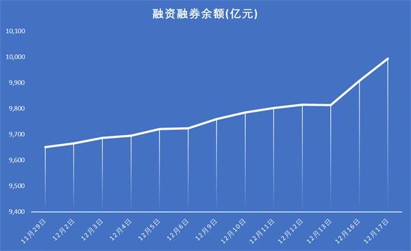 12月以来,市场持续走强,伴随着赚钱效应的回暖,各路资金加速入场,作为杠杆资金代表,融资融券活跃度也显著提高。据数据统计,截至12月17日,12月份两融余额累计增长343.66亿元至9993.87亿元,创2018年4月17日以来新高。
