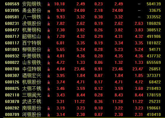 钢铁板块11日盘中大幅走高,截至发稿,安阳钢铁、甬金股份、八一钢铁等涨停,凌钢股份、杭萧钢构、韶钢松山等涨幅超7%。