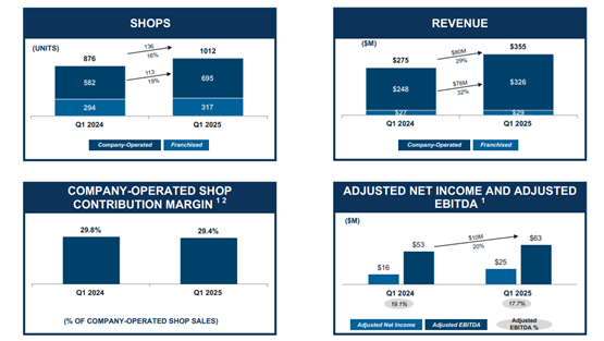 在整体宏观环境依旧偏谨慎、同业竞争日益加剧的背景下,Dutch Bros在2025年第一季度继续交出超出市场预期的强劲答卷,延续了其自上市以来的稳定超预期表现。