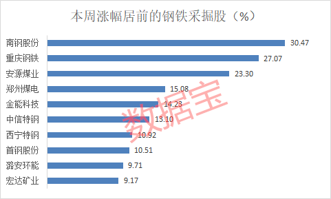除钢铁外,煤炭板块也出现异动。安源煤业连续收获两个涨停板,郑州煤电、金能科技本周涨幅均超过10%。