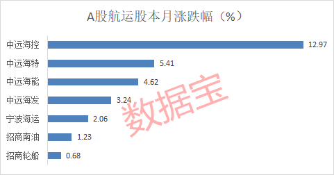 BDI暴涨,直接受益的则是航运股,目前,A股涉及海运的有7只个股。本月反弹幅度最大的是中远海控,涨幅超10%,其他个股走势都比较温和,且股价都处于相对低位。