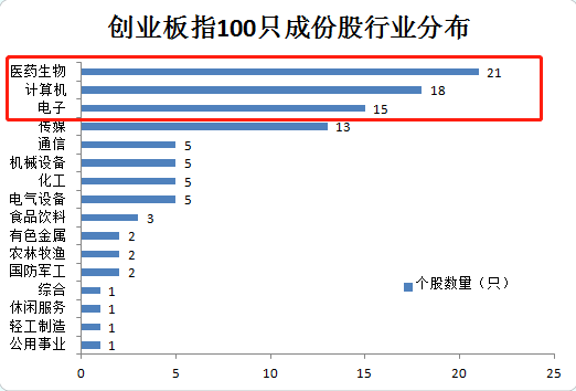 e公司记者梳理发现,创业板指成份股中,医药、电子、计算机三大行业所涉及的个股数量占比达到44%。复盘今年这波行情来看,医药股和科技股可谓是最大的赢家,医药生物、电子、计算机三大板块年内涨幅均超过36%。