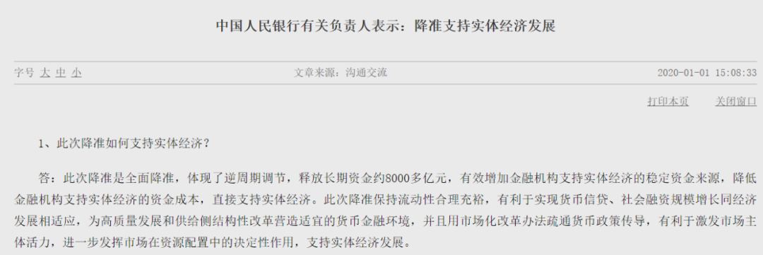 年初全面降准0.5个百分点,释放资金约8000多亿元。