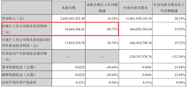 然而仅看第三季度,顺鑫农业实现营业收入26.46亿元,同比增长34.25%;净利润1666.43万元,同比大幅下滑69.71%,扣非净利润同比大降76.78%。