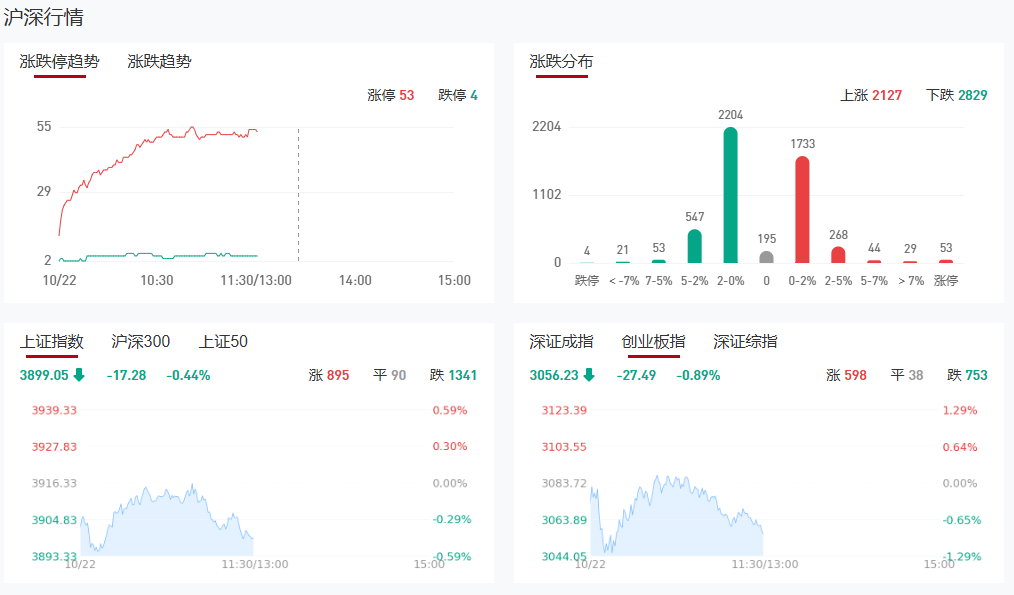 午评:创业板指半日跌近1% 黄金概念股集体下挫