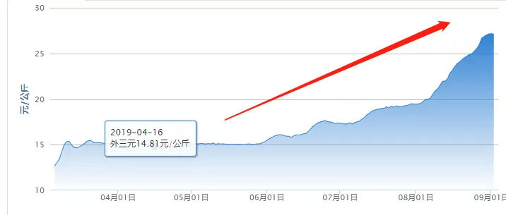 2018年正处于猪价低位,一年之间,猪肉价格翻了一倍还多。