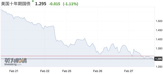 截至北京时间28日8:25,美国10年期国债收益率报1.272%,30年期则报1.773%,继27日后持续刷新历史新低。目前,美国联邦基金利率为1.5%~1.75%,自去年10月后便始终保持不变。28日,日经225指数开盘重挫3%。前日,日、韩等亚太市场仍处于盘整格局,A股在经历前日下挫后小涨报收,人民币仅小幅下挫,维持韧性。