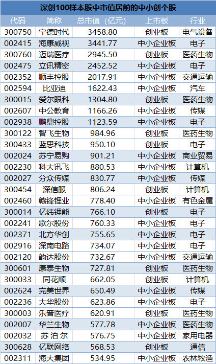 科技龙头股为一大看点。以深创100指数为例,近六成样本股来自于电子、计算机、医药生物三大行业,科技特色突显。市值规模方面,深创100指数样本股平均市值规模达708.47亿元,其中美的集团、格力电器、宁德时代、海康威视等多只千亿市值龙头股在列。