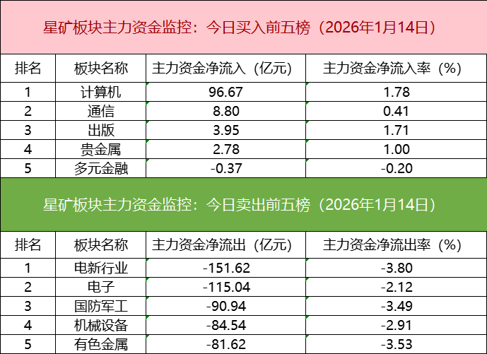 从主力板块资金监控数据来看,计算机板块主力资金净流入居首。