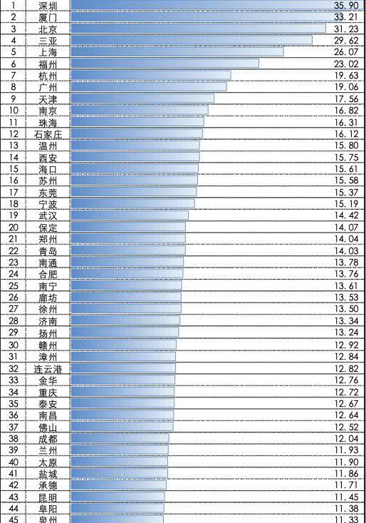 [摘要]房价收入比最高的几个城市并非为传统刻板印象中的北上广深四个一线城市,而是深圳、厦门、北京、三亚和上海。其中二线城市厦门和三线城市三亚,无疑成为这份榜单中的两个“黑马”。