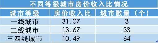 与此同时,33个二线城市的房价收入比均值为13.67,相比一线城市而言,购房的压力大大减少;而64个三四线城市的房价收入比值为10.49,与二线城市之间的差距并不算大。