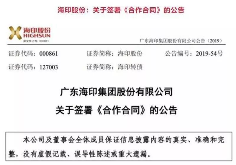 这让股价萎靡不振的海印股份看红了眼。6月11日,没有任何医药背景的海印股份发布公告称,公司拟与许启太、今珠公司签署了一份《合作合同》,拉开了此次闹剧的大幕。