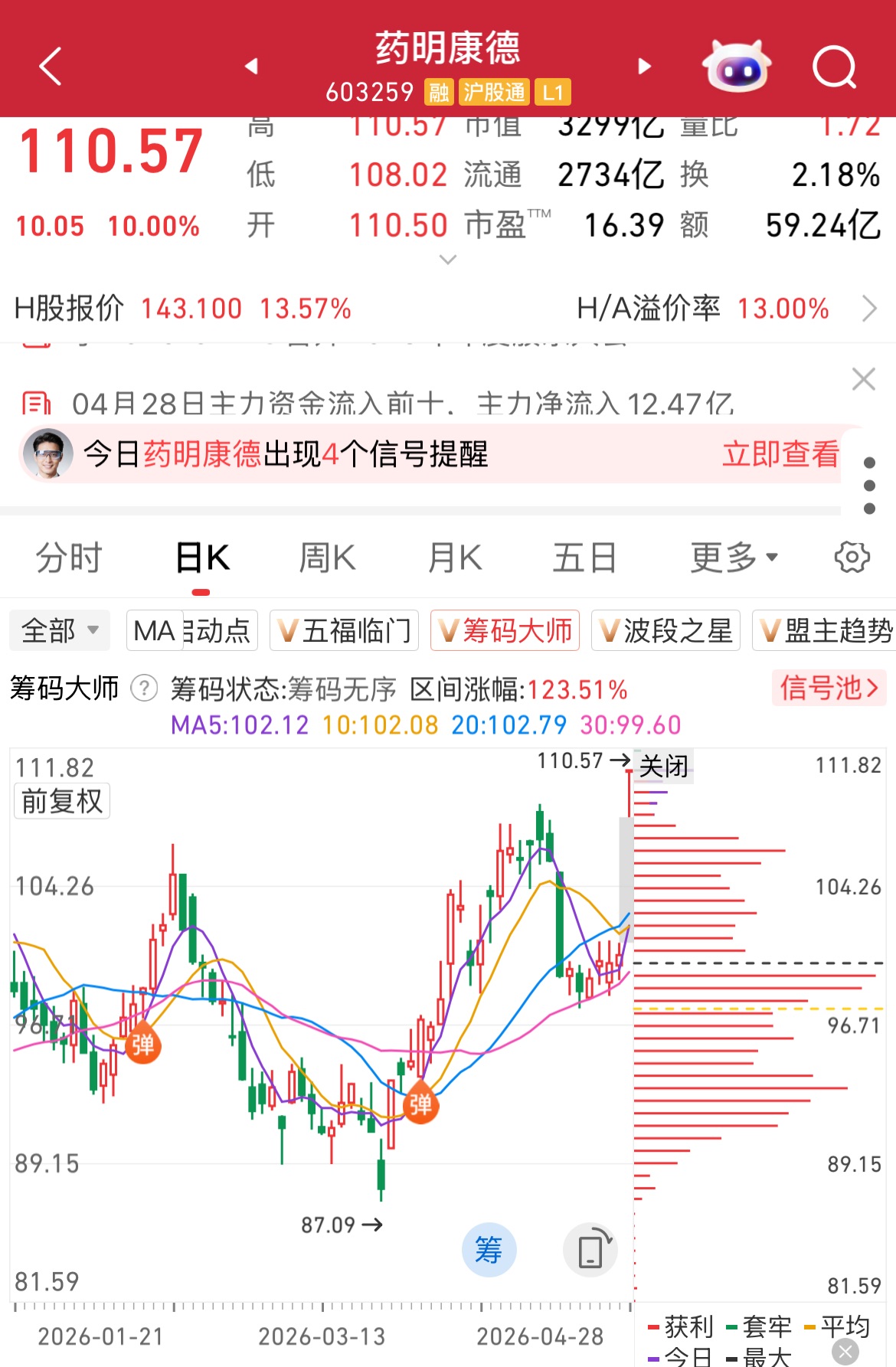 注:主升浪并非完全无迹可寻!“筹码大师”显示,药明康德今天涨停,但是我们回看,原来早在3月27日软件指标就依旧能够出现“弹”,其实所有的上涨都有迹可循!更多学习案例参考,尽在“筹码大师”!点击详情>>