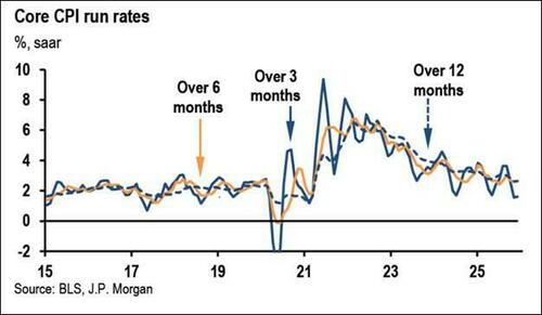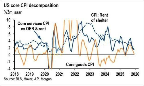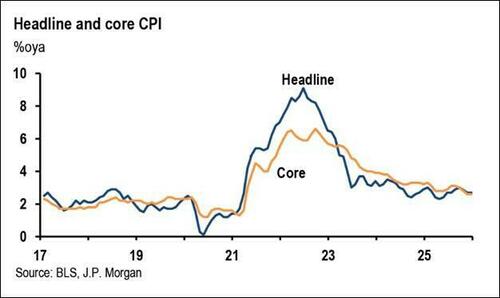 当然,鉴于基数效应的消退,Feroli预计1月CPI同比仍将从去年12月的2.7%降至2.5%。考虑到额外关税相关成本将在今年转嫁给消费者,以及过去一年贸易加权美元持续走软的潜在传导影响,摩根大通继续预计通胀将在今年某个时期重新加速。
