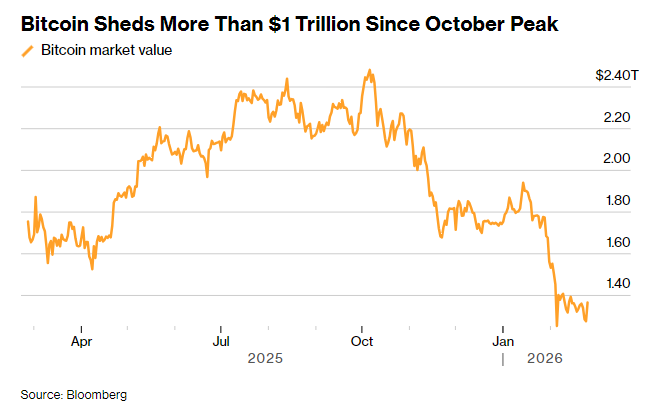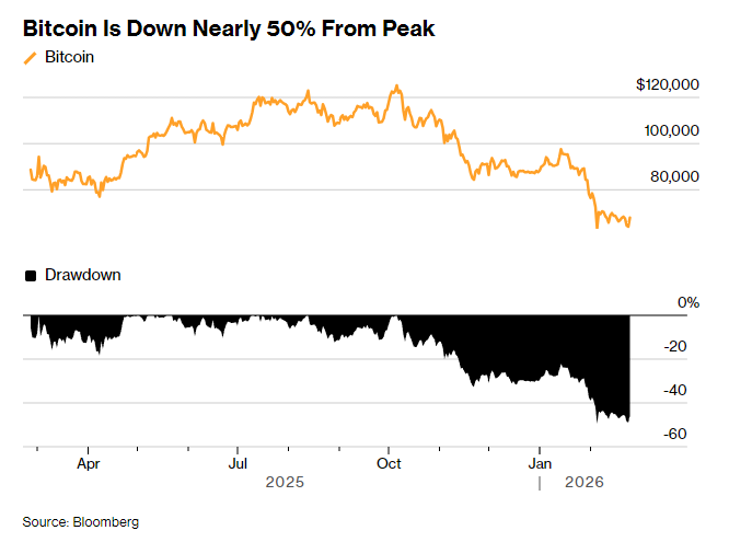 看空逻辑无需赘述。即便周三出现反弹,比特币仍在7万美元下方徘徊,远低于去年10月12.6万美元的高点,市值蒸发1万亿美元。全网近45%的比特币持仓处于浮亏状态,期权交易者纷纷买入对冲暴跌风险的合约。关于机构入场能缓冲下跌的信心已荡然无存,连续数周的ETF资金外流更让市场普遍认为:比特币的主流化进程正在失灵。