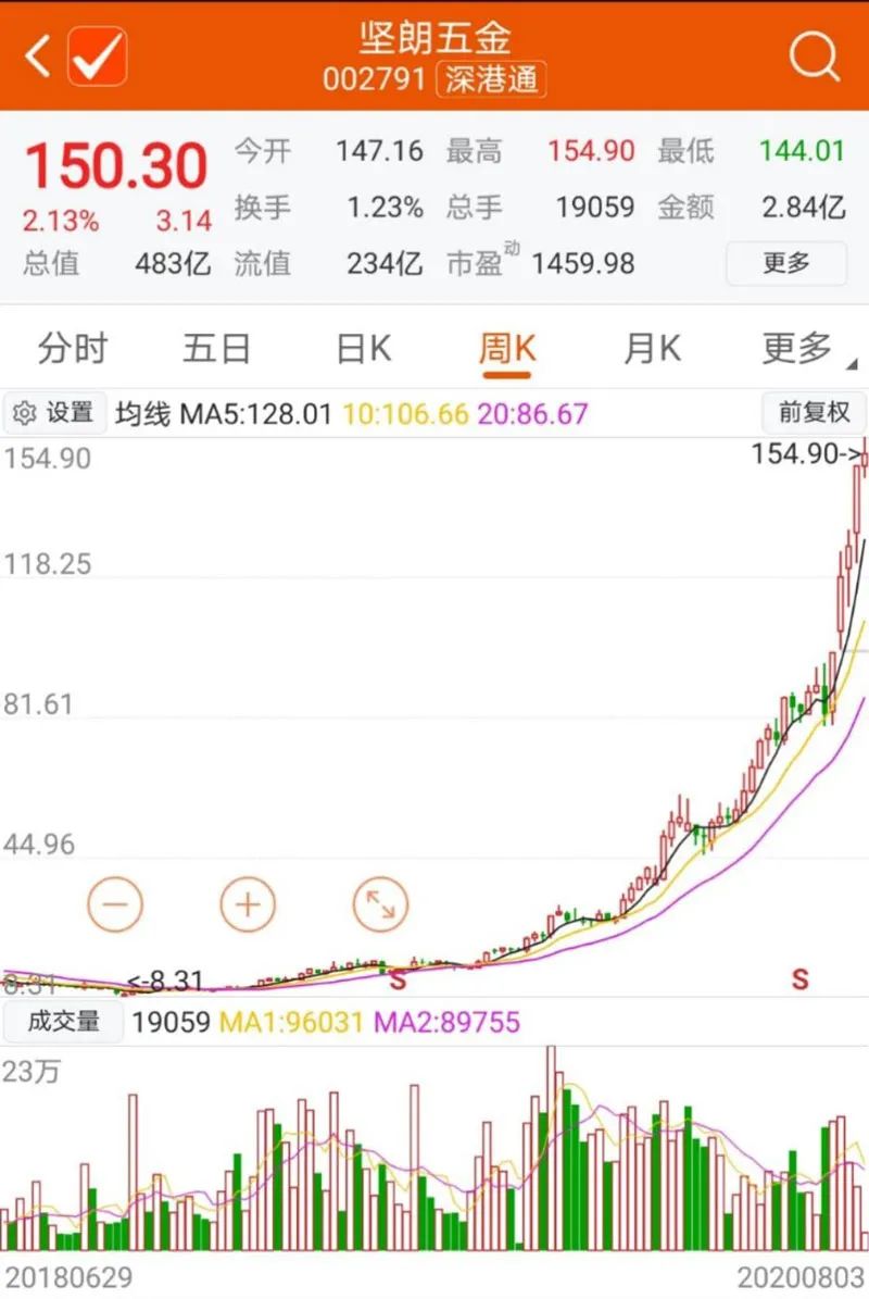 这公司是做建筑五金的,从2018年底的8.49元(前复权价)一路飙升,今年8月3日最高154.9元,股价涨幅高达18倍。