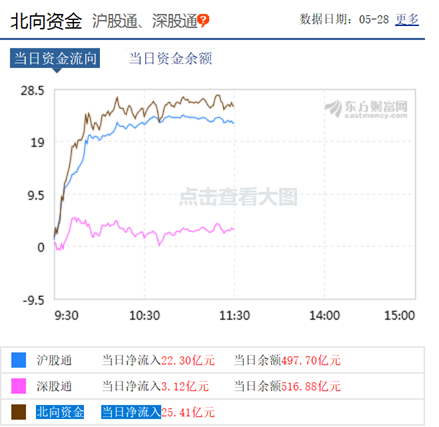 北向资金方面,28日,沪股通半日净流入22.30亿元,深股通半日净流入3.12亿元。北向资金半日合计净流入25.41亿元。