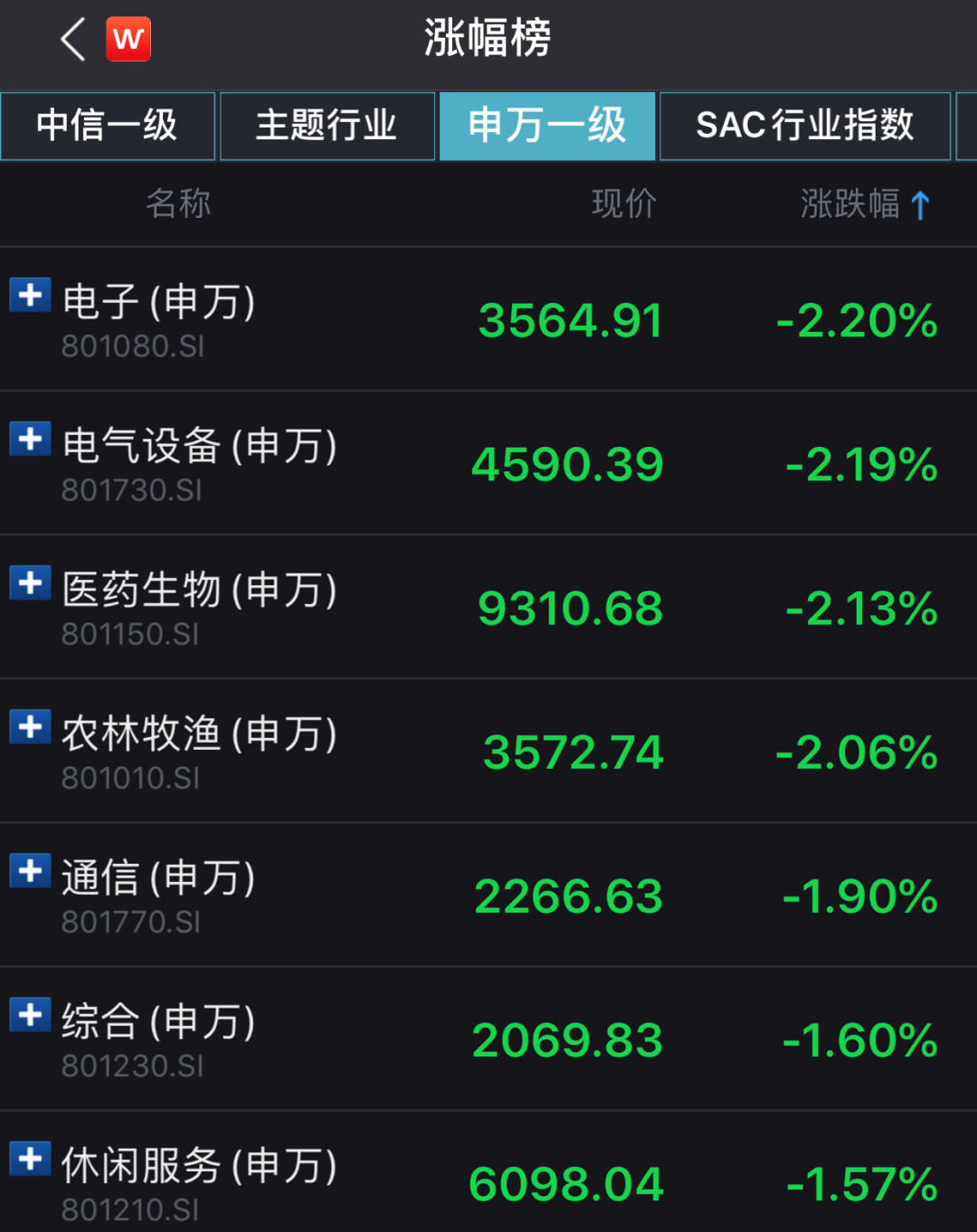 另外,科技类及消费类板块28日出现回调,午间收盘时,电子、电气设备、医药生物、农林牧渔、通信等板块跌幅居前。