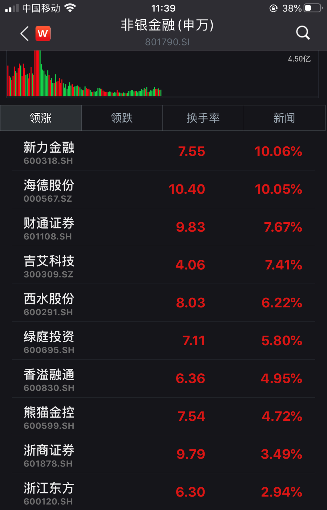 非银板块中,多只个股涨停,财通证券浙商证券表现亮眼。