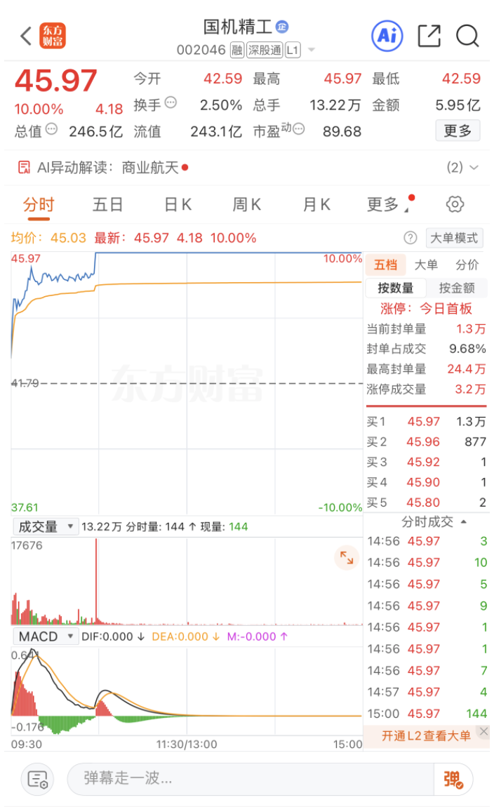 值得关注的是,4月8日,国机精工股价强势涨停,报收45.97元/股。