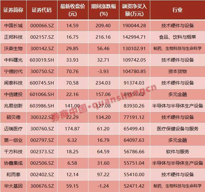 至今,两融扩标已满两月,记者梳理发现,至10月23日,两融新增标的的融资余额超900亿元,其中302只个股吸引超亿杠杆资金。其中,中国长城、正邦科技、沃森生物、中科曙光、宁德时代5只个股期间净买入额超过10亿元,分别为19.00亿元、14.30亿元、13.01亿元、10.97亿元、10.48亿元;闻泰科技、中信建投、兆易创新、硕贝德、迈瑞医疗、第一创业、千方科技、协鑫集成、和而泰、华大基因等10只股票吸引杠杆资金超5亿元。