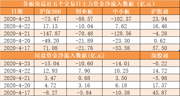 沪深300今日主力资金净流出73.47亿元,创业板净流出88.57亿元,中小板净流出102.37亿元。沪股通净流入23.94亿元,深股通净流出0.22亿元(本文中沪股通、深股通净流入额以当日已用额度来计,与成交净买入额略有差异,但表示的意义大体一致)。