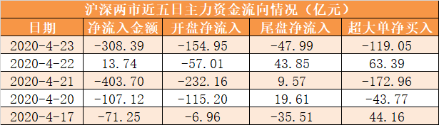 今日沪深两市主力资金开盘净流出154.95亿元,尾盘净流出47.99亿元,两市全天资金净流出308.39亿元。