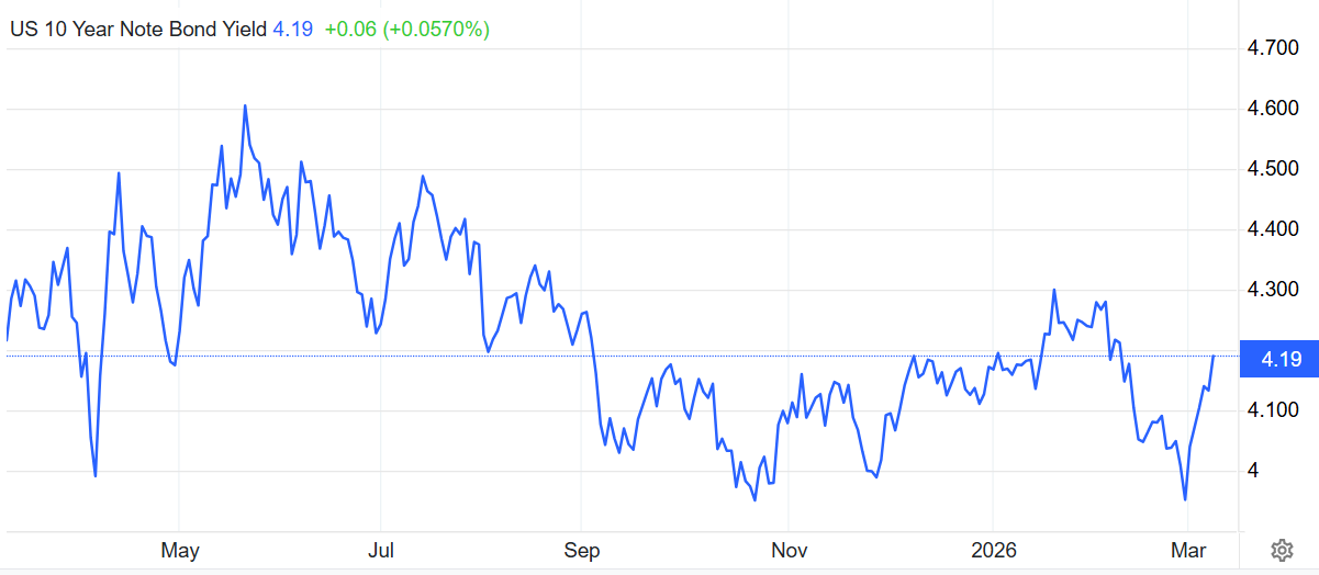 有着“全球资产定价之锚”称号的美国10年期国债收益率答复上涨逾7个基点——一举创1月以来最大升幅,徘徊在4.20%附近的近期高点,并且这种因通胀升温以及更加严峻的滞胀担忧推动之下的收益率激增压力并蔓延至其他主权国债市场(收益率上行意味着国债价格下跌)。股市方面,自美以与伊朗冲突导致中东地缘政治局势升级以来,这轮抛售已导致全球股市市值蒸发约6万亿美元。尤其是股市波动率指标大幅跳升,以及亚洲各交易所的成交量也明显高于月度均值,这样的价格剧烈走势带有投降式抛售而非谨慎观望的典型特征。