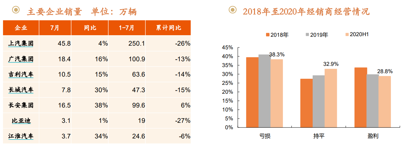 数据显示,1-7月汽车行业累计销量预估完成1234万辆,乘用车同比下降18.6%,商用车同比增长14.3%,预计主要系经济修复叠加国六升级带来的低基数效应。虽然近期行业整体向好,但由于年初疫情影响,山西证券预计汽车行业半年报情况较差。
